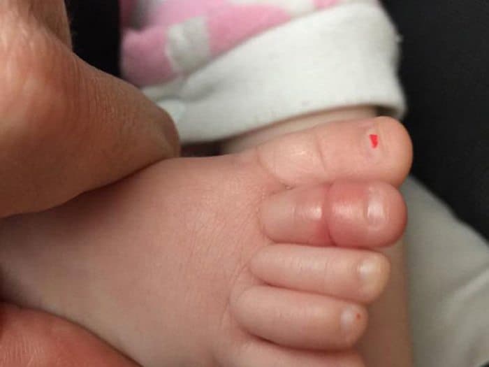 The swelling was due to loose sock thread that wrapped around baby’s toe. As a result of this, the blood circulation was cut off and caused pain to the baby.