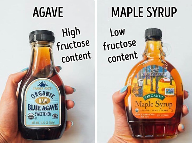 Fructose is very dangerous for health. The syrup, agave is refined, and it contains the very much amount of fructose which we can find in only chemical sweeteners. On the next hand, pure maple syrup is organic and less processed. This syrup provides you with 24 antioxidants which strengthen the metabolism of your body.