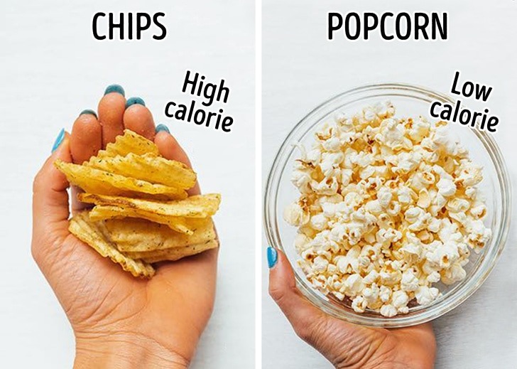 According to you, there is no difference in your diet if you eat a full bowl of popcorn instead of eating a bag of chips and Doritos. You should know that one handful of chips contains around 50 calories, 16 g carbs, and 9 g fat. Despite it, popcorn only contains 93 calories without any fat and carbs.