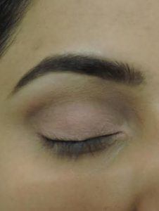 From the Lorac Pro Palette, I chose the ‘buff’ shade. The lightest color should be applied and is suitable for highlighting the arch area under the eyebrow.