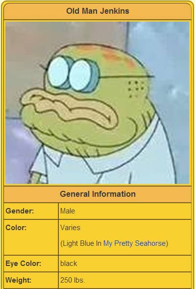 We introduce you will SpongeBob and the old man Jenkins.