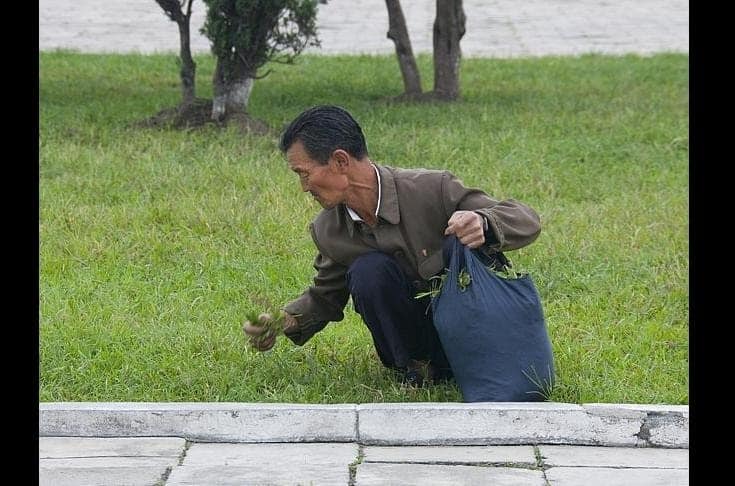 This is one of the most popular pictures in the west. The tour guides get furious if you take a picture of people eating grass from the parks. Stricken by the poverty, North Korea is in a severe shortage of food. ” Some people even resort to eating grass,” Lafforgue sighed.