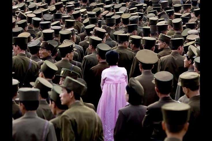The military of North Korea is kept secret from the rest of the world. It is strictly forbidden to take pictures of the military in this country. Lafforgue risked his life to click this picture.