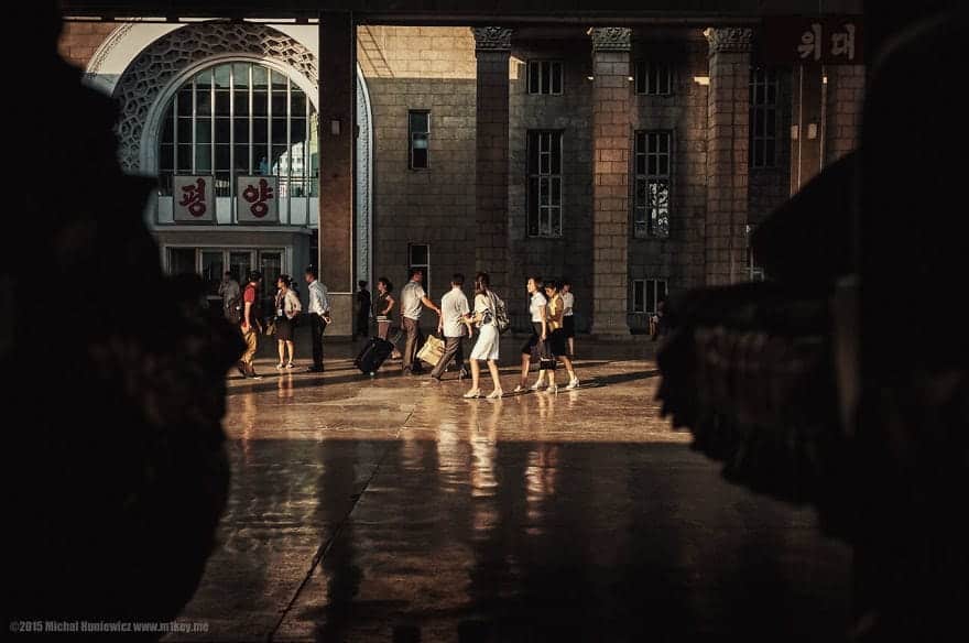Huniewicz and his team were not allowed to travel anywhere without their guides. This is because the Dictator doesn’t want anyone to document anything that will tarnish the reputation of his country. Everything that a tourist can capture has to glorify North Korea. For instance, this picture, where people can be seen walking on roads or a man peeing, could have landed Huniewicz in prison.