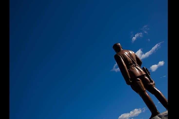 In North Korea, it is forbidden to cut off the rest of the leader’s statues in a photograph. This place is known as Mansu Hill Grand Monument. The rule is to frame both the leaders, entirely, in a single picture. However, Huniewicz broke this rule too.