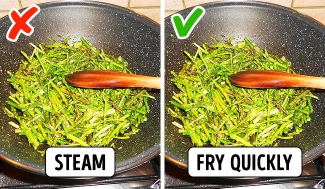 The reason-Asparagus is very healthy as it is loaded with many nutrients. It contains fibre, folate, vitamins A, C, E, and K. In addition to this it has chromium, a trace mineral that will enhance the ability of insulin to transport glucose from the bloodstreams into the cells. With all these mineral and vitamins you will achieve some serious health perks. To preserve more vitamins and antioxidants you should fry it for 5-7 minutes, and this is how you get more of these healthy nutrients than while steaming. Also, if you do not want to dissolve Vitamin C in water, then you should stay away from steaming the asparagus.