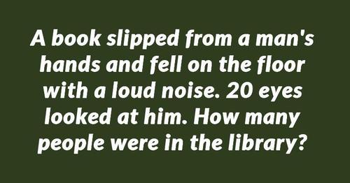 8. All others were looking at the man, but the man cannot look at himself so excluding him ten people were standing in the library along with him. Each person has two eyes.