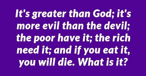 5. What thing can have more powers than God and can be eviler than the devil. And it can shock you to know that poor people have it but rich people always search for it?