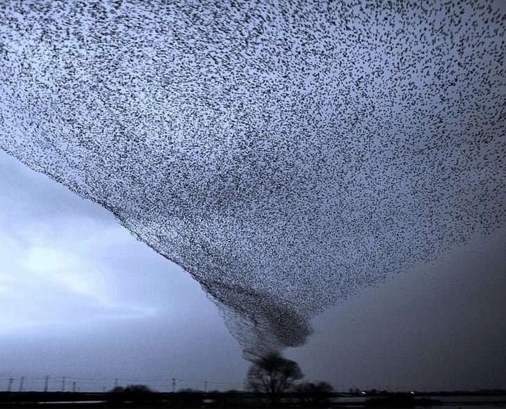 It seems as if it the wind tornado, and not the bird one. There is the perfect editing of the photograph.