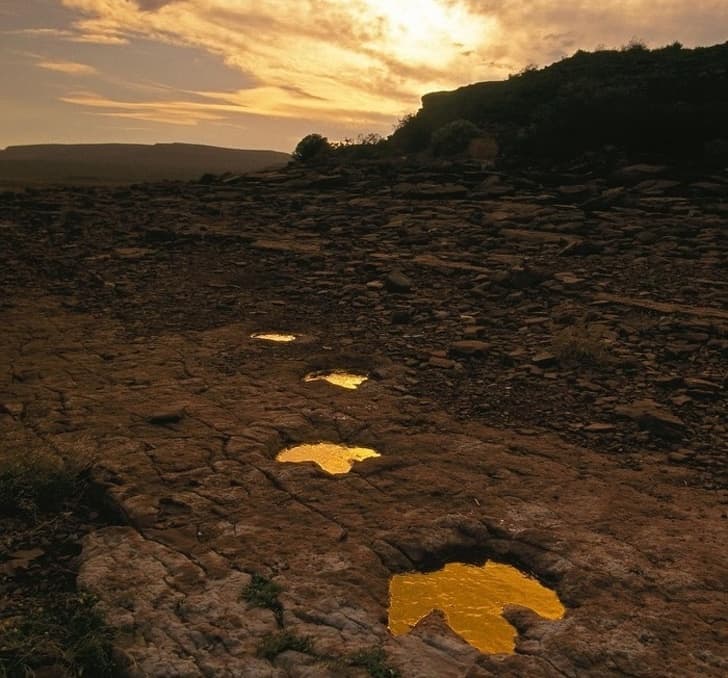 The footsteps of dinosaurs that have lived in the first half of the Cretaceous period, Argentina