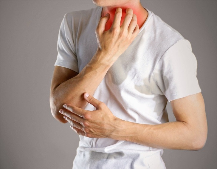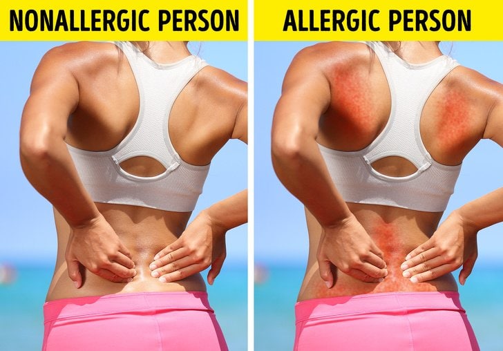 If on the hot sunny day you may feel allergic to your sweating body. Such type allergy in which your body develop rashes due to your sweat is known as cholinergic urticaria. It will go away right after you will cool down.