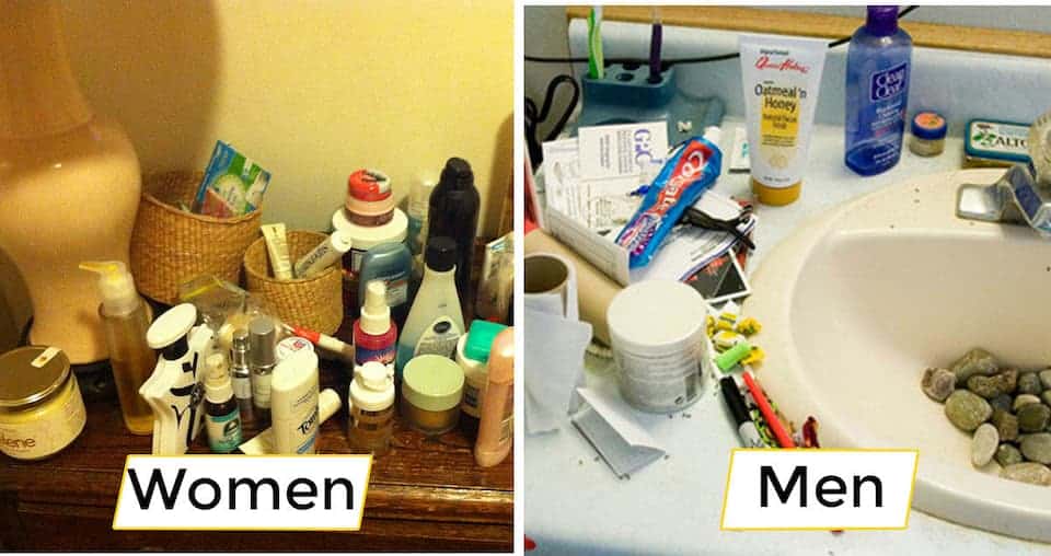 Leave the organization aside; there is a stark difference in the number of personal-care products owned by men and women. Men only keep the necessary items.