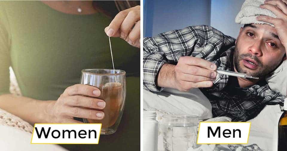 Women like to cure themselves with exotic home remedies so that their sickness is talk-of-the-day. Men don’t want to put efforts and straight away, call a medic.