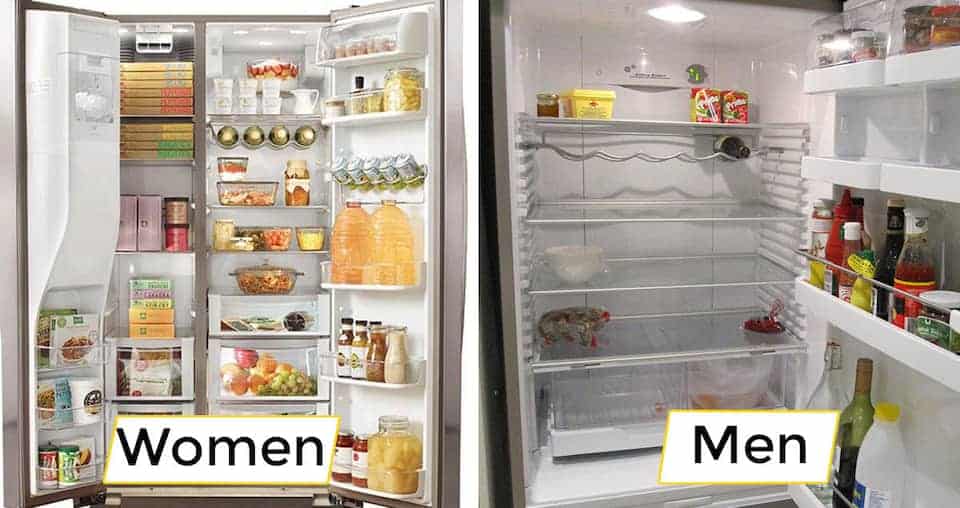 Women like to organize stuff so that it’s easy to locate them. Men may even keep shoes in their fridges.