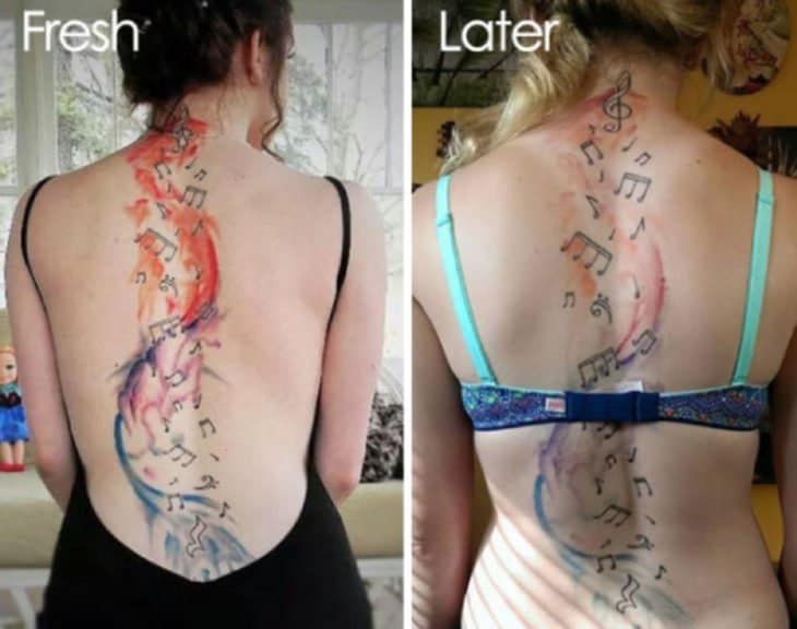 Lifestyle 16 tattoos that just got worse with time. By Blushy Babe - June 28, 2018 0 316635 Share FacebookTwitterPinterestReddIt 1. Why would you choose a lizard for a tattoo? Secondly, it is one of the hilarious faded tattoos that turned into something else.2. Any Taureans out there?3. Okay, equally scary!4. Tsunami won’t matter after a few years, you see.5. Musical tattoo…6. Faded snake mating.7. Are you going to fight with that?8. That is too much facepalm for a tattoo.9. Is the eyesight weaker now?10. Foreseeing is a fading skill?11. The shark just lost its lethal nature.12. What is this supposed to mean?13. All colors…14. Does it even make sense anymore?15. Wow, what has it come down to after 13 years?16. Did it get scarier after fading? 5. Musical tattoo… 6. Faded snake mating. 7. Are you going to fight with that? 8. That is too much facepalm for a tattoo.