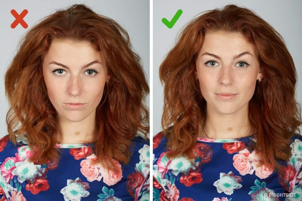 During a photo session, do not give an expression of displeasure as it makes your features come out in a shoddy manner. To overcome this, look straight into the camera.