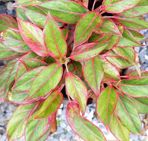 The leaves are of pink outline that seems beautiful and hence they are striking against the teal blue and the white background. They also absorb the cosmetic ingredients from the air. The best place to keep it is in the shower room.
