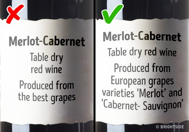Bottles with a cheap rate but with the label of best quality grapes used are not good because they might have used the extra quality of the grapes. So we must check it before buying.