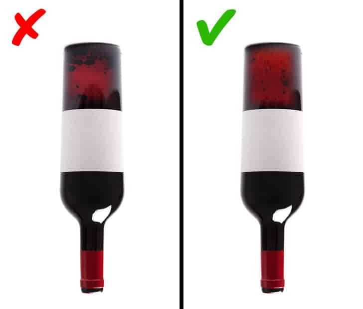 When you place the bottle vertically, then there should be one inch left above the level of the wine otherwise the wine has been in the direct contact with the oxygen. It will affect its taste negatively.