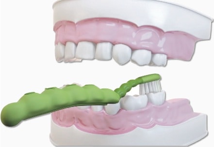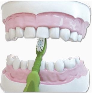 Put the brush on the outer gumline with the bristles facing towards the gum. Just brush your teeth smoothly and gently.