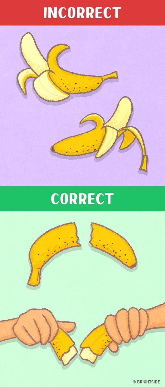 All you need to do is break the banana into two parts and, squeeze them so that the edible part comes out automatically in no time.