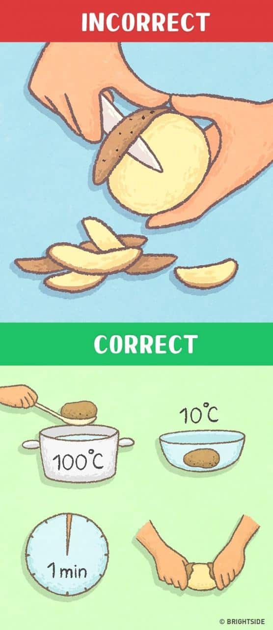 Finding the knife itself may consume your entire time. Follow these steps to peel off the unwanted part of the potato.