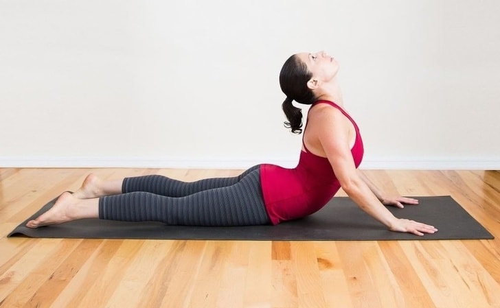By stretching your legs back, lie down on your stomach. Now place the top of your feet on the floor. Right under shoulders, your hands must get placed. Inhale the air and then slowly try to lift your chest in the air till you get the straight arms. Press the tailbone towards the floor and then curl your spine with the head moving down in the backward direction. Go in motion until you feel like a stretch. Hold down the position for at least fifteen to thirty seconds and later release it.