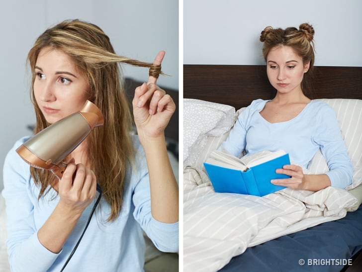 You don’t have to run after looking for a hair curler if you want curly hair. All you need to do is apply a hair setting spray on your hair before going to sleep and, segregating them into sections securing them by twisting around a pin. You can make use of bobby pins as well.