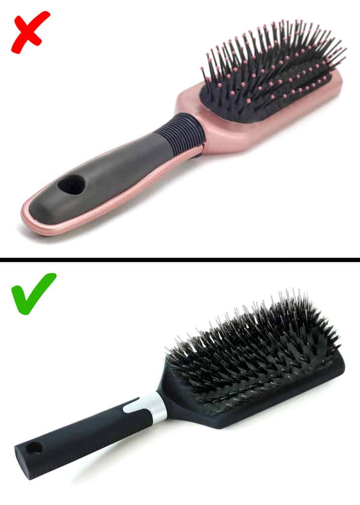 Brushing your hair with a wrong comb can not only ruin your hairstyle but also deteriorate their quality. So, make sure that you use a brush which has different bristles.
