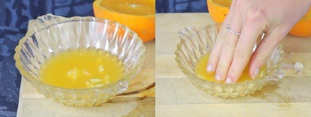 Take half a cup of orange juice with 1 clove garlic in a bowl. Mix them together and dip your fingers in that mask. Leave for 15-20 minutes and rinse off.