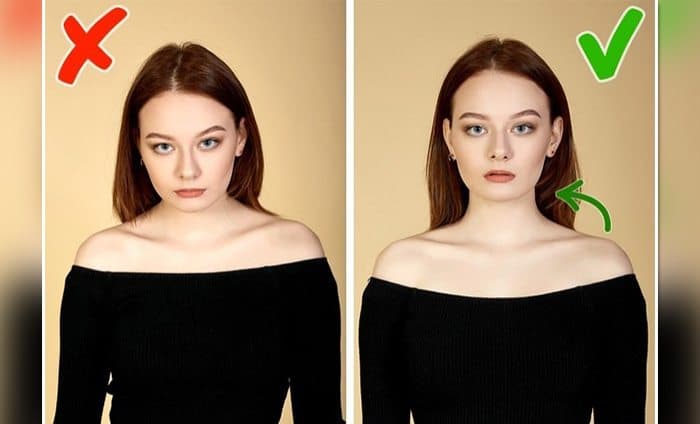 Correction: Instead of leaning your chin forward (which is making you look like you’ve got a double chin), tilt your head slightly forward. This will give a hint of elegance to your pictures.