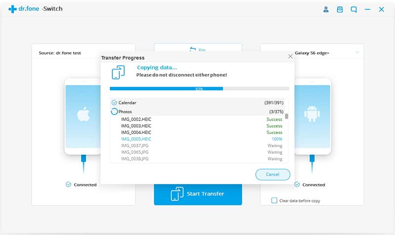 On the other hand, dr.fone – Switch provides a hassle-free, fast, and direct device-to-device transfer solution. With just one click, you can easily transfer all the major types of content from one device to another. Since it supports a cross-platform transfer of data, you would be able to switch your phone without facing any unwanted hassle.