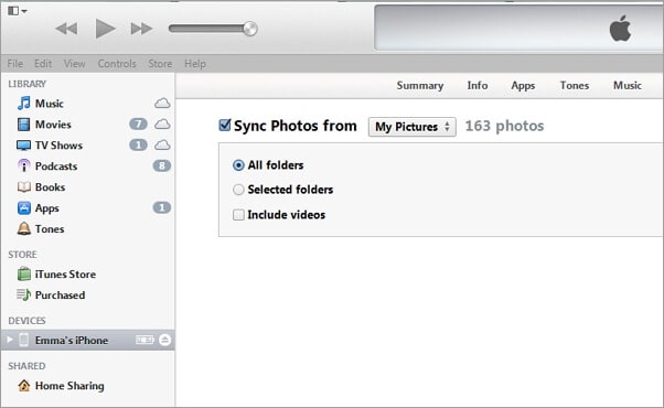 - Also, you can go to the Photos tab to sync photos between your iOS device and iTunes. Once you have transferred photos to your computer, you can go to the iTunes folder and copy them to your Android device.