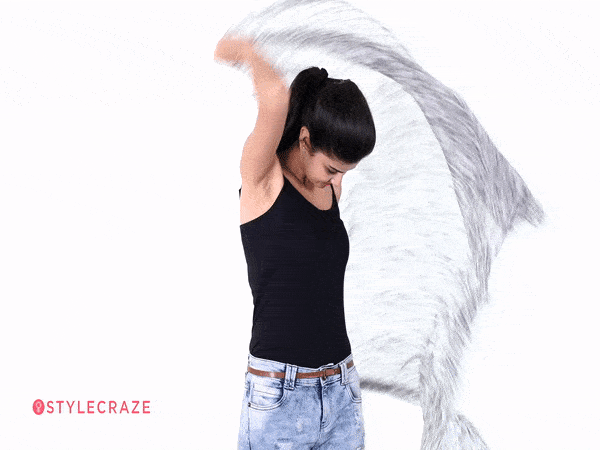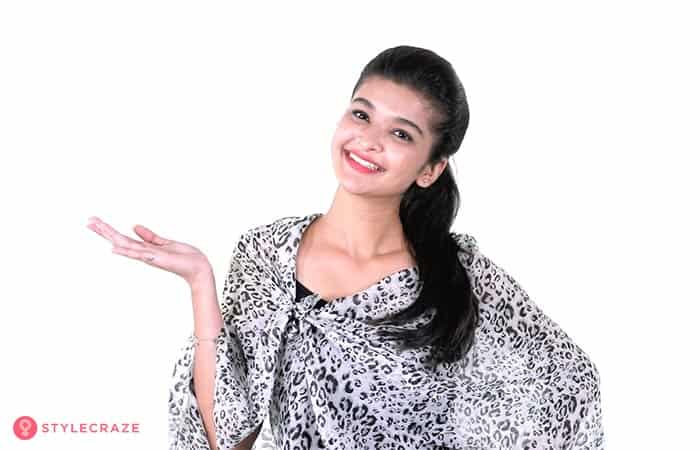 For this, you need to loop the scarf around your neck and let the ends of the scarf hang. Take the one right end of the scarf and tuck it behind your neck. Also, you may tuck the remaining part of the veil on the left side and finally get to adjust its corner ends.