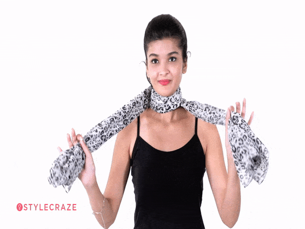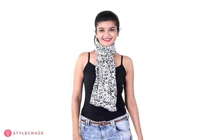 You need to loop your scarf around your neck and let the ends of it hang. Now you can tie and then pull so that you can secure it at the neck. It seems that you wear a new scarf every day but in actual, there is a single twist in that.