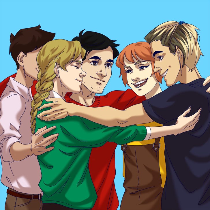 This type of hug takes place between the group of friends to show the togetherness among friends or colleagues especially after achieving some worthwhile. It can also take place to exchange the energy before starting a new project in business and share support for each other.