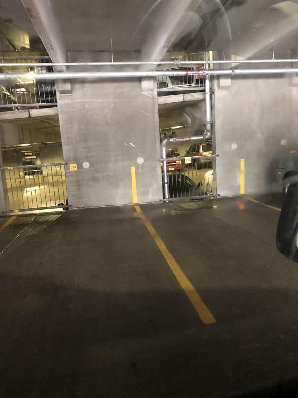 In the parking area, the yellow line has extended to the wall So that it makes easy for the people to park their cars quickly and safely. Otherwise, usually, this yellow line is short and people get confused while parking.