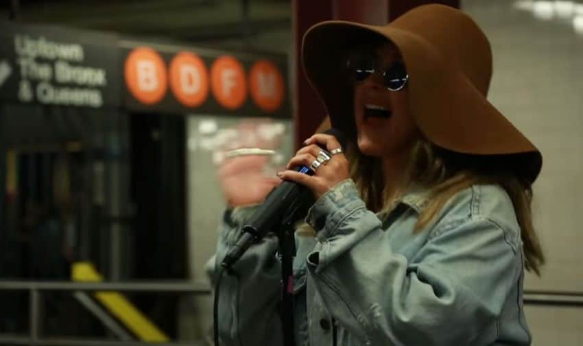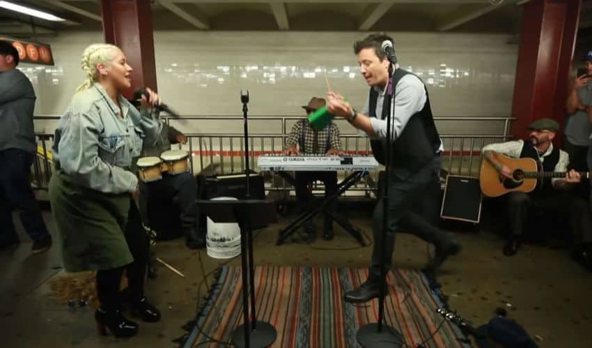 Jimmy Fallon And Christina Aguilera In Subway Station NYC