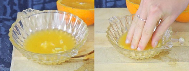 To prepare this mixture you need to pour a ½ cup of orange juice in a bowl and then add 1 clove of crushed garlic to the orange juice in a bowl. Now let your nail soak the mixture for about 15-20 minutes and then take out your hand and wash it thoroughly.
