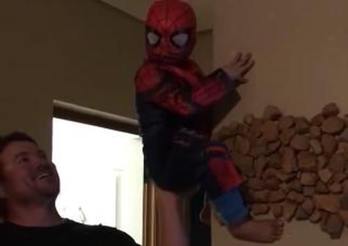 And then he found that his father was holding the boy from behind and the little kid said that he wanted to show everyone that what the powers Spiderman has to fly and save people from danger.