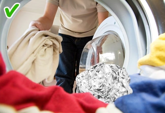 Toss a ball of tin foil in your machine before washing. It works as an antistatic gadget for garments. You can likewise utilize the tin foil ball to accelerate the drying procedure.