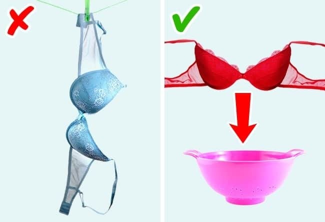 If by chance you’re washing delicates like bras, utilize a colander, put the bra in it, and let the surplus water drain. At that point, the bra has lost excess water and can be hanged to dry.