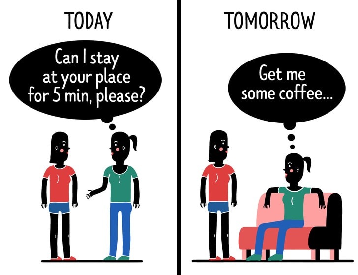 At the first time, the person will do a little favor to you but later due to his demands and requests you will get trapped, and you will be unable to say no to him. This trick is called ‘foot in the door.’ Marketers use this trick to sell their goods.