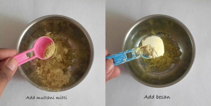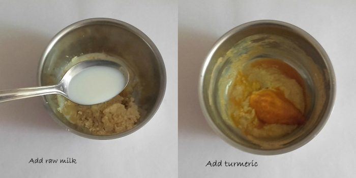 Add a pinch of turmeric and some milk to get a good consistency. Make sure that the pack is not thick.