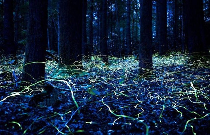This is one of the unbelievable pictures. Can you get the fireflies in the given below picture? The photograph is much clear such that you can even find the long exposure in the image. One thing is must in the photo, and that is the lighting captured by the photographer and the thin branches of the trees on the ground.
