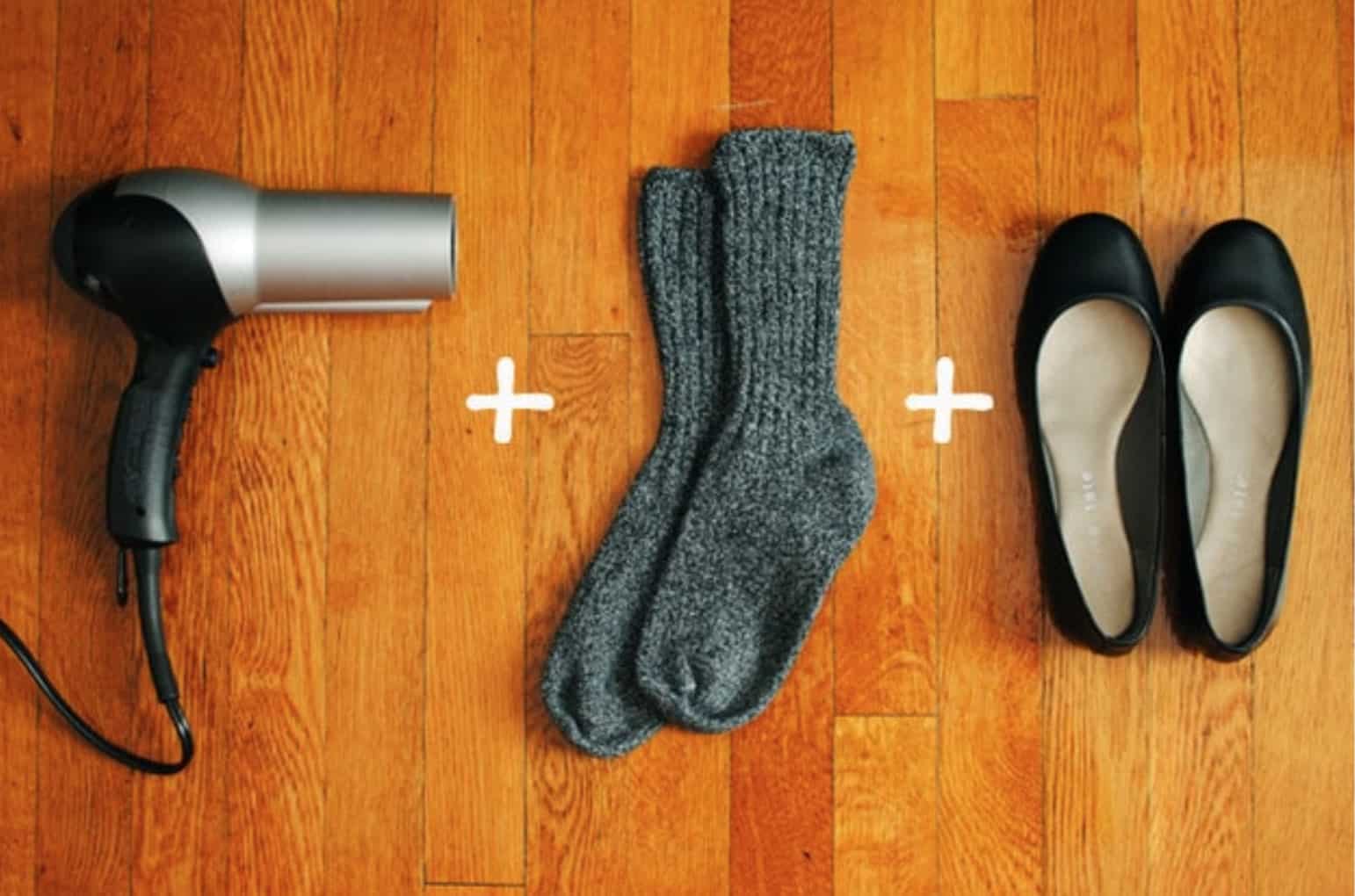 Take a hairdryer, a pair of socks and shoes. Wear the socks and step into your shoes and blow dry the areas you feel tight. Now, remove the socks and see how it feels. This trick will stretch out the shoes.