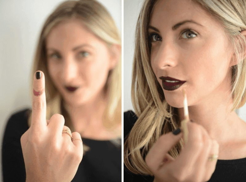 After you apply the lipstick, suck your finger and take it out. This removes any kind of lipstick that goes into the mouth when applying.