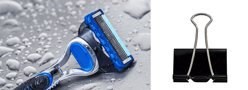 Lock your razor with a bulldog clip over your razor in the case to prevent any injury while you explore shaving kiting-kit.