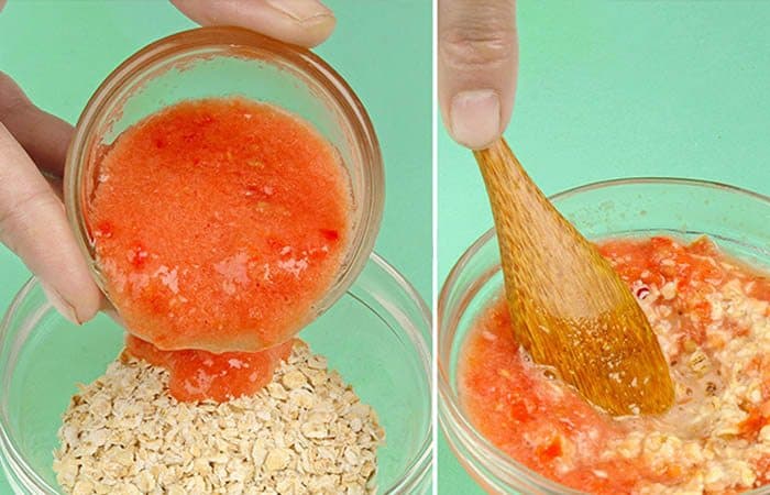 This is an excellent skin exfoliator. It will get you rid of dead skin and will leave behind smooth clean and clear skin. You’ll require tomato juice and oats for this face pack. Blend some tomato juice with a teaspoonful of oats. Let the oats absorb the juice. Mix it well and then apply on your face. Let it stay for 15 minutes and then massage your face in a circular motion gently. Wash it off.