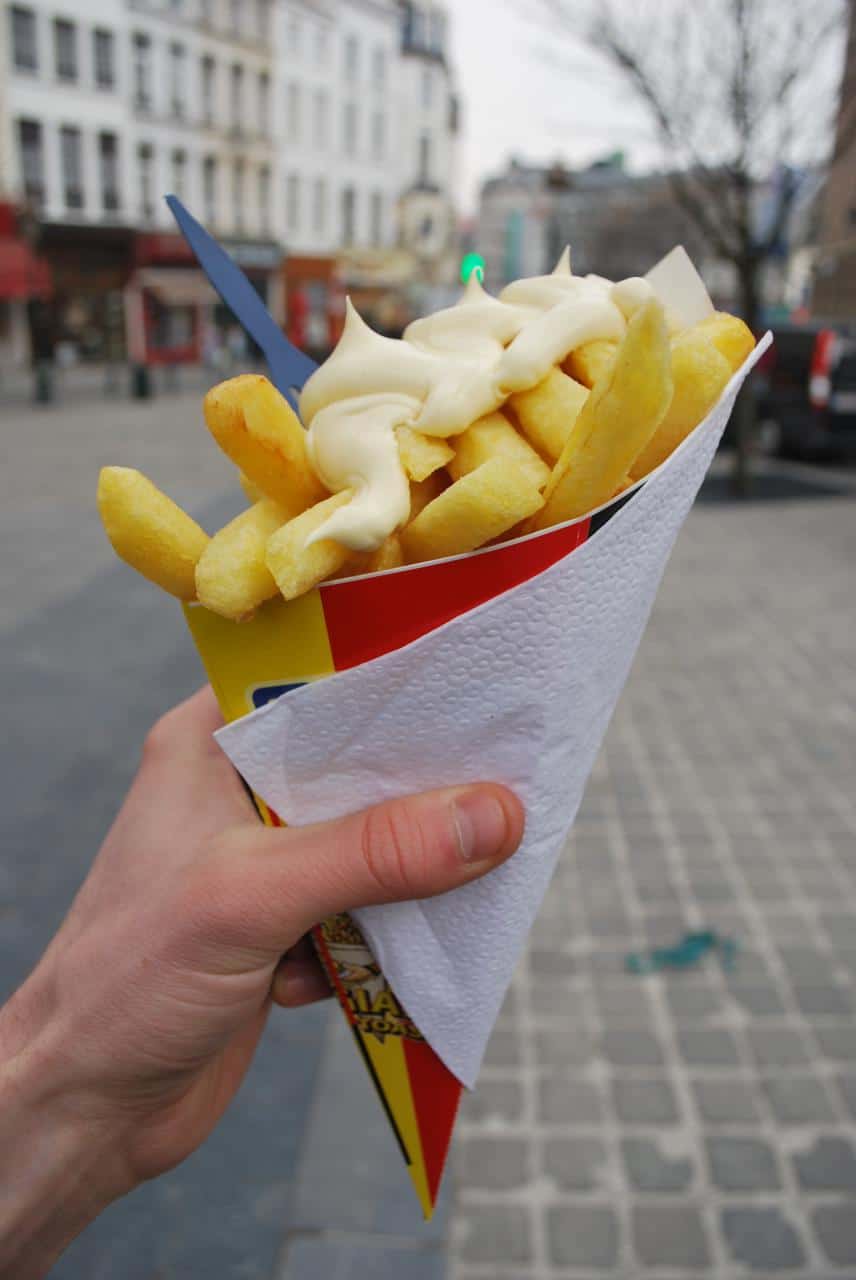 Mayonnaise is the favourite thing to eat to the Belgium people. They try the new dish with the Mayonnaise especially when the talk comes to their fries. Fries are best to serve with the cone. A little bit salt gets spread over them, and Mayo gets loaded on the top. Mouthwatering dish.